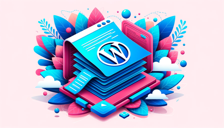 DALL·E 2023-10-22 12.03.17 - Vector of a blue and pink intertwined ribbon representing WordPress and snippets. The ribbon floats in a space filled with vibrant, artistic, and inno